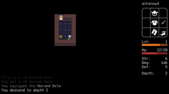 All items have a description, which you can read from the inventory [i]. Weapons have unique characteristics. The initial dagger deals critical hits if you attack diagonally.